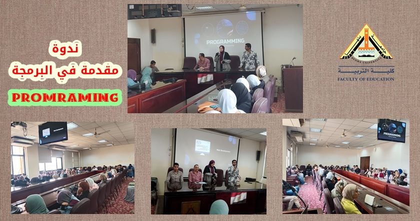 نظم قطاع رعاية الشباب بالكلية ندوة بعنوان " مقدمة في البرمجة " لطلاب الكلية ، وذلك تحت رعاية أ.د/ مجدي الشحات عميد الكلية ، وأ.د/ أحمد عاشور وكيل الكلية لشؤون الطلاب، ود. تامر شحاته مدير رعاية الشباب بالكلية، ووذلك في إطار رفع مستوى الوعي التكنولوجي لطلاب كلية التربية، وقد حاضر في الندوة المهندسة ألاء سامح من كلية الحاسبات ، كما حاضر في الندوة الطالب/ علي أحمد علي من طلاب الكلية ممن لديهم خبرة جيدة بالبرمجة.
