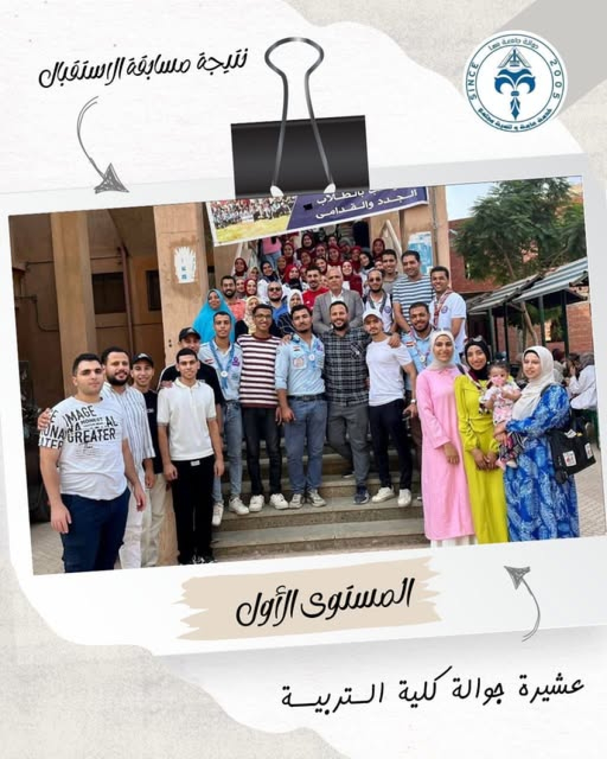 يتقدم الأستاذ الدكتور/ مجدي الشحات عميد الكلية، والسادة وكلاء الكلية، وأعضاء هيئة التدريس، والهيئة المعاونة، والسادة الإداريين، بخالص التهنئة والتقدير إلى عشيرة جوالة كلية التربية لحصولها على المستوى الأول في مسابقة الاستقبال لعشائر جوالي وجوالات جامعة بنها